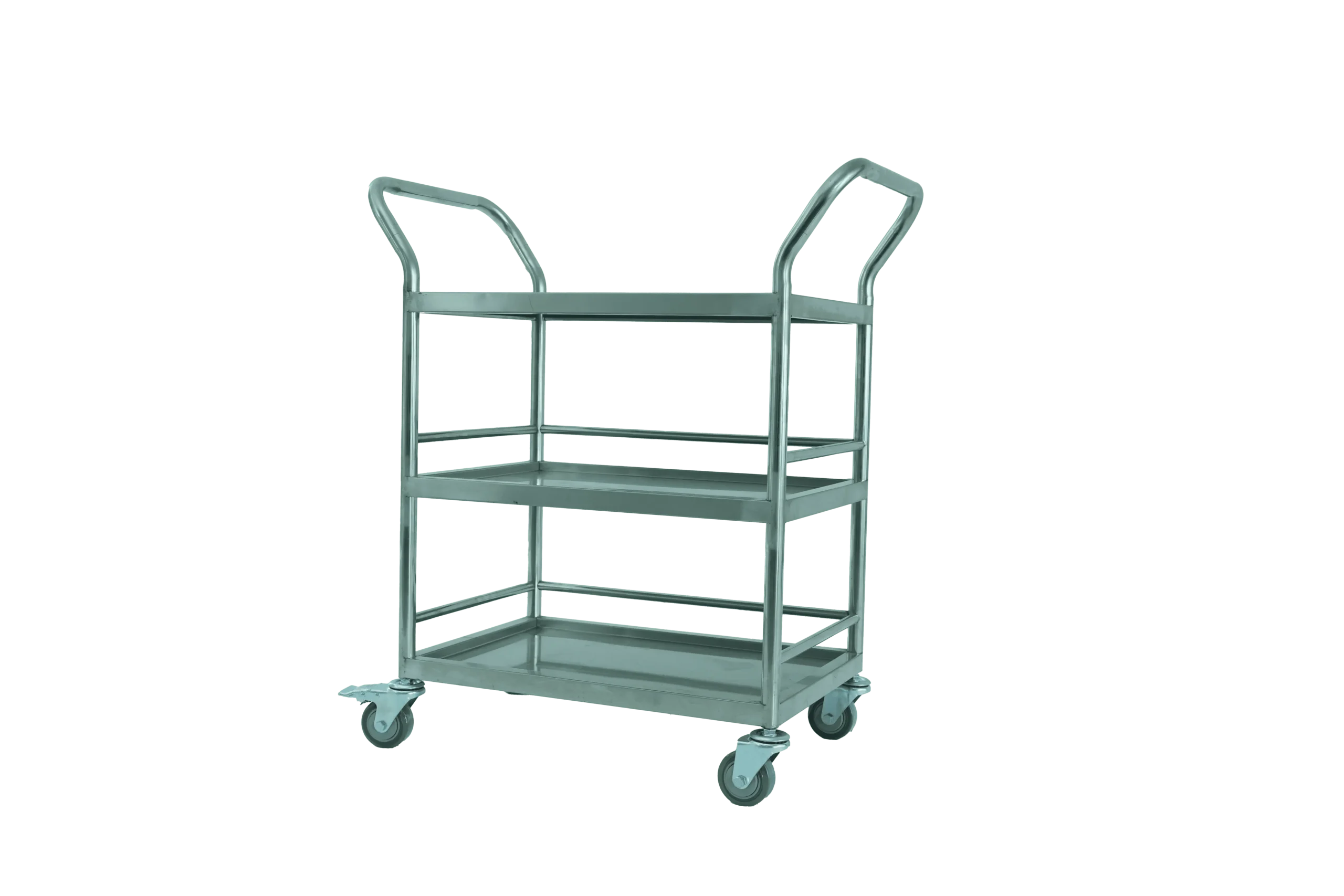 Three-Tier Recessed-Deck Trolley with Three-Side Guard Rails and Double-Side Handles